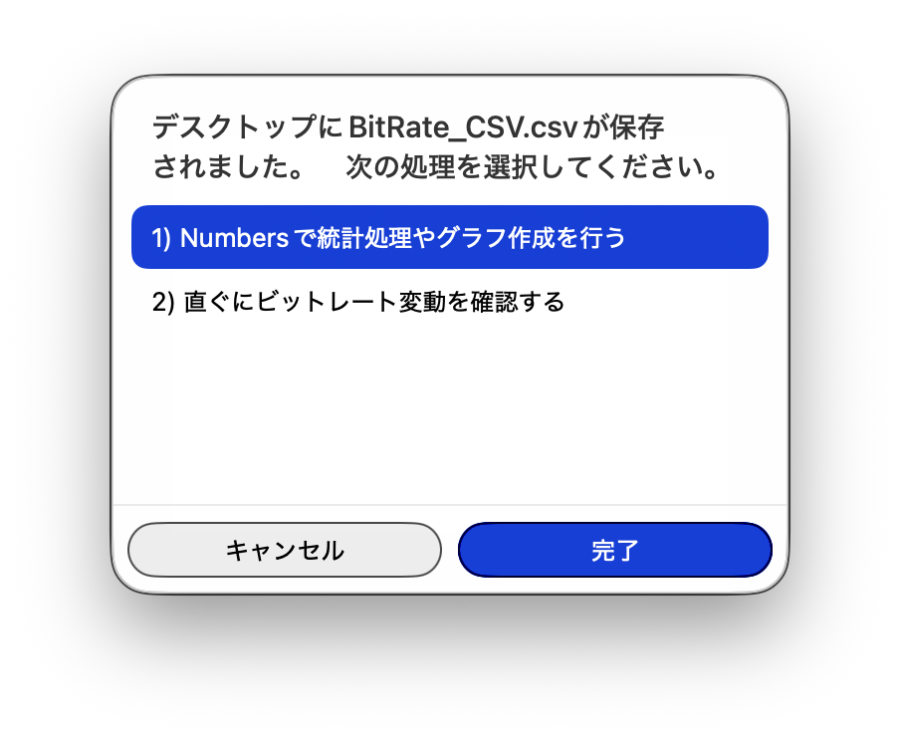 CSVファイルが引き継がれたNumbersが自動起動する - 直ぐにビットレート変動グラフを確認 :