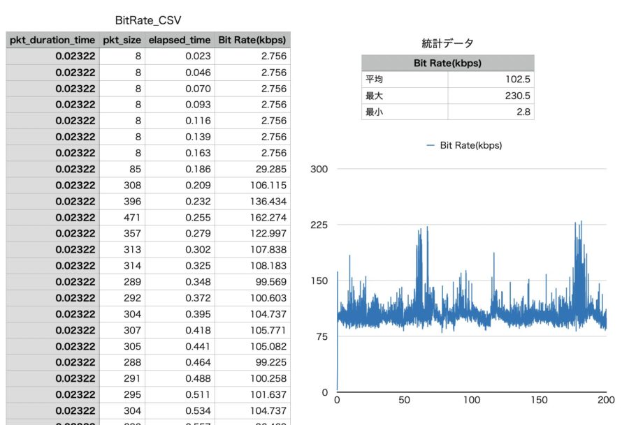 | pkt_duration_time | pkt_size | elapsed_time | Bit Rate(kbps) |