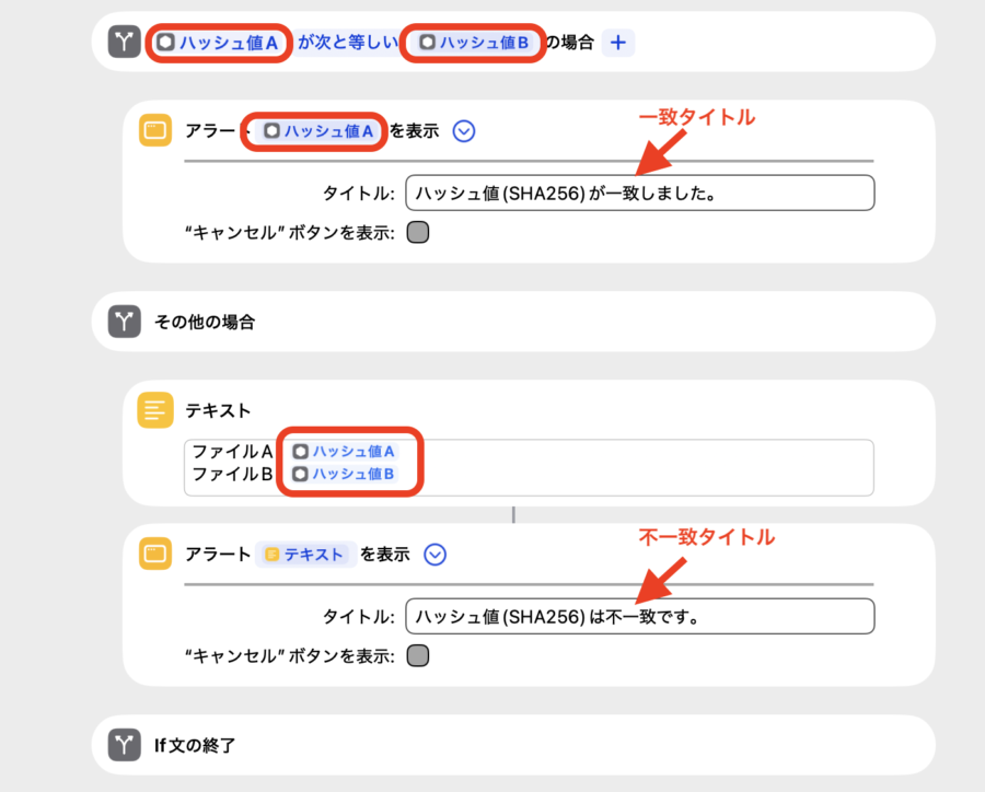- 【if文】アクション:ハッシュ値Aとハッシュ値Bを比較