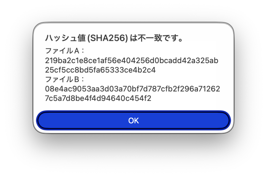 Appleショートカットアプリを利用して、ファイルAとファイルBのハッシュ値を比較してファイルの内容が一致しているか否かを調べるツールを作成しました。